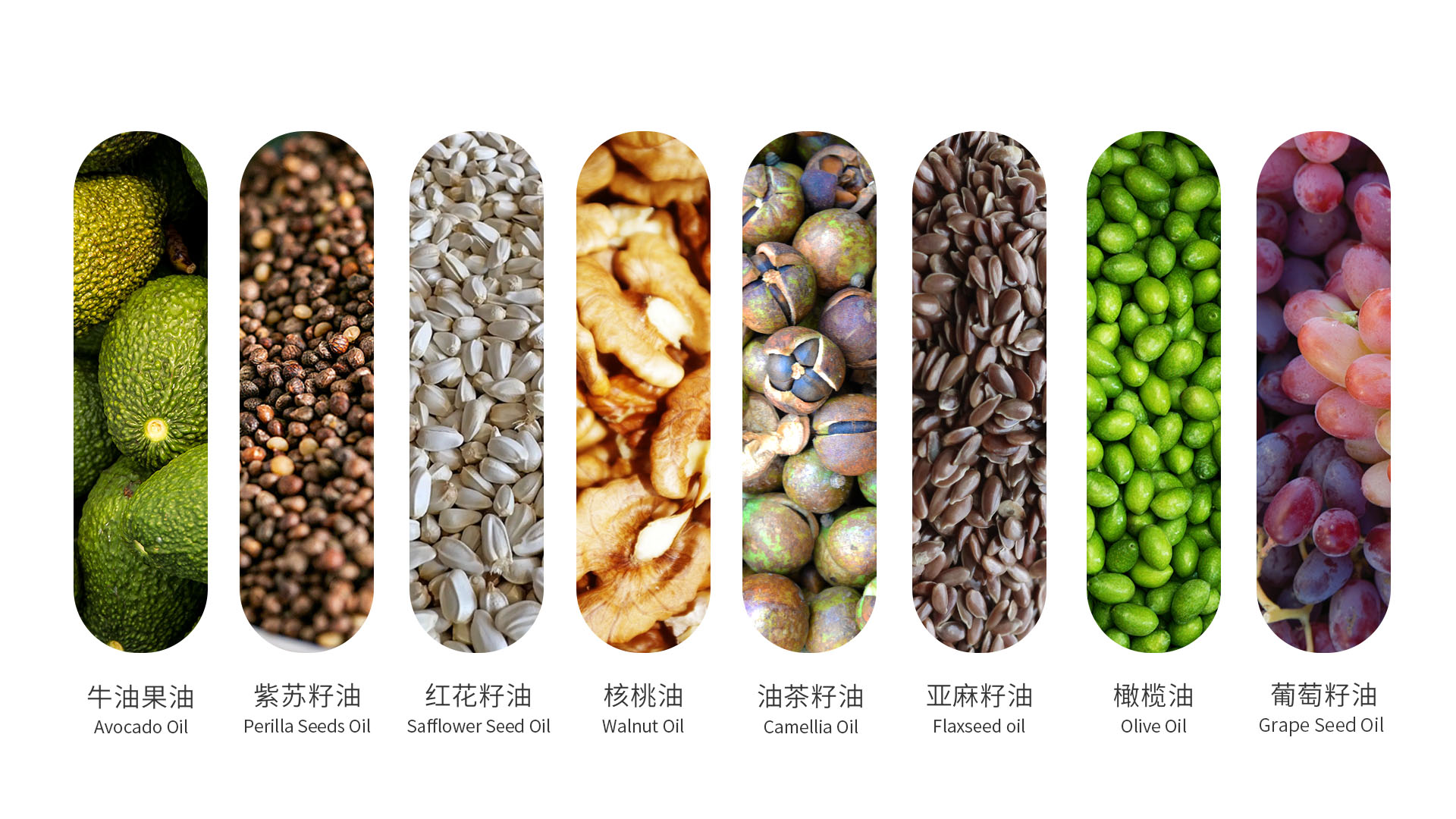 含核桃油、亞麻籽油等,低溫壓榨,營養(yǎng)安全。
